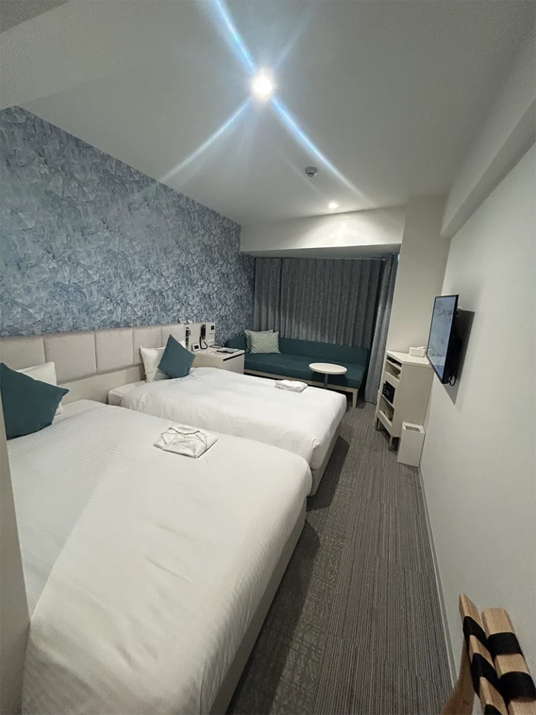 ツインルームはシングルベッドが2つにソファーがついてました!