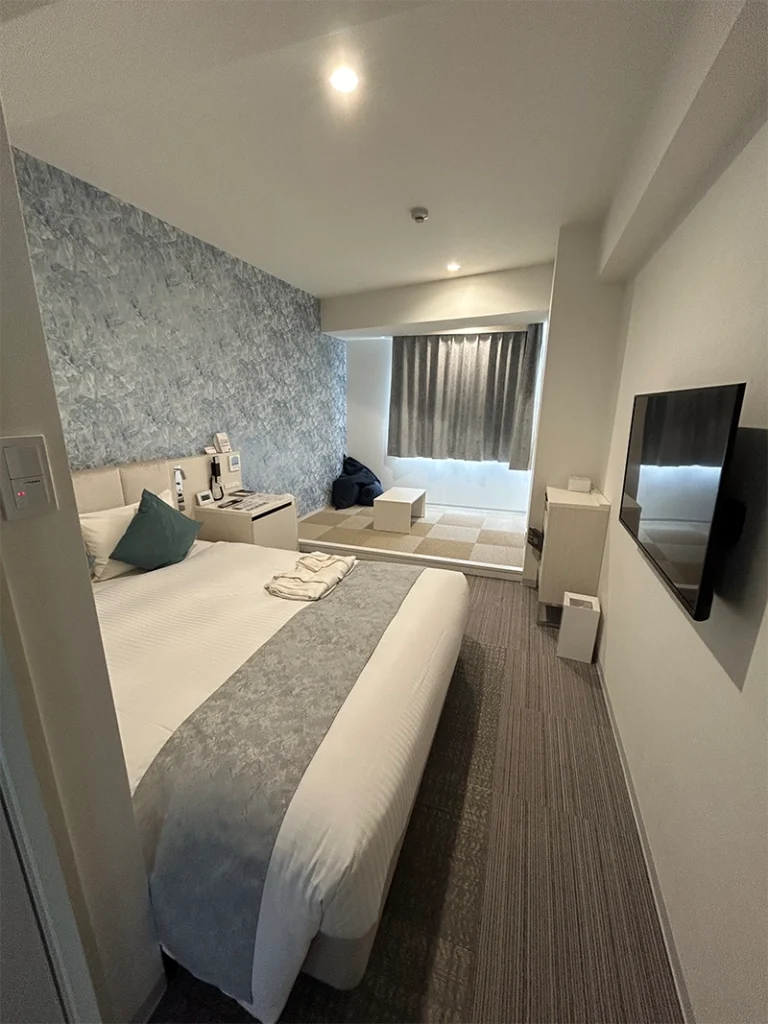 ダブルルームは畳間もあってゆっくりとくつろげる空間でした^^テレビはNetflixやYouTubeも入っていたので映画やアニメなども見れますよ〜!