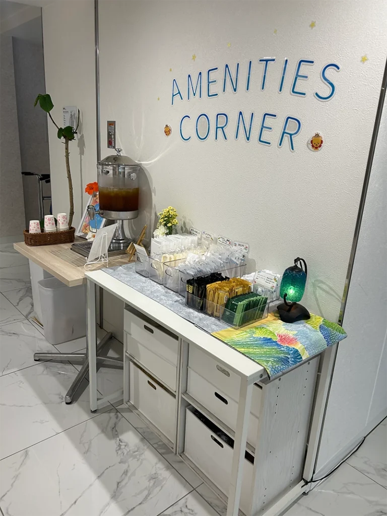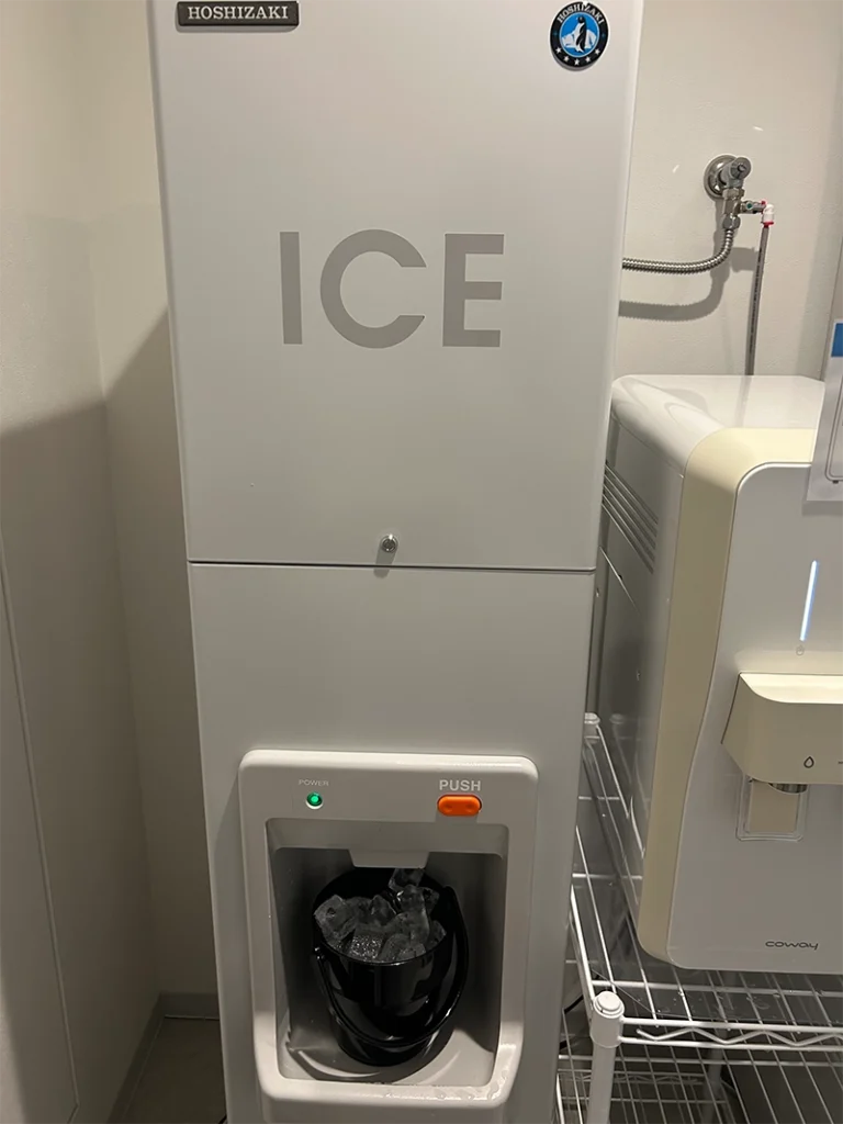 氷を入れる容器もあるので部屋に持っていけます!水サーバーもありました^^