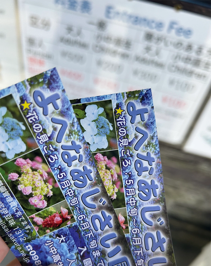 チケットを受け取ったのであじさい園の中へ入っていきます〜!チケットもあじさいが沢山のっていてかわいかったです♪