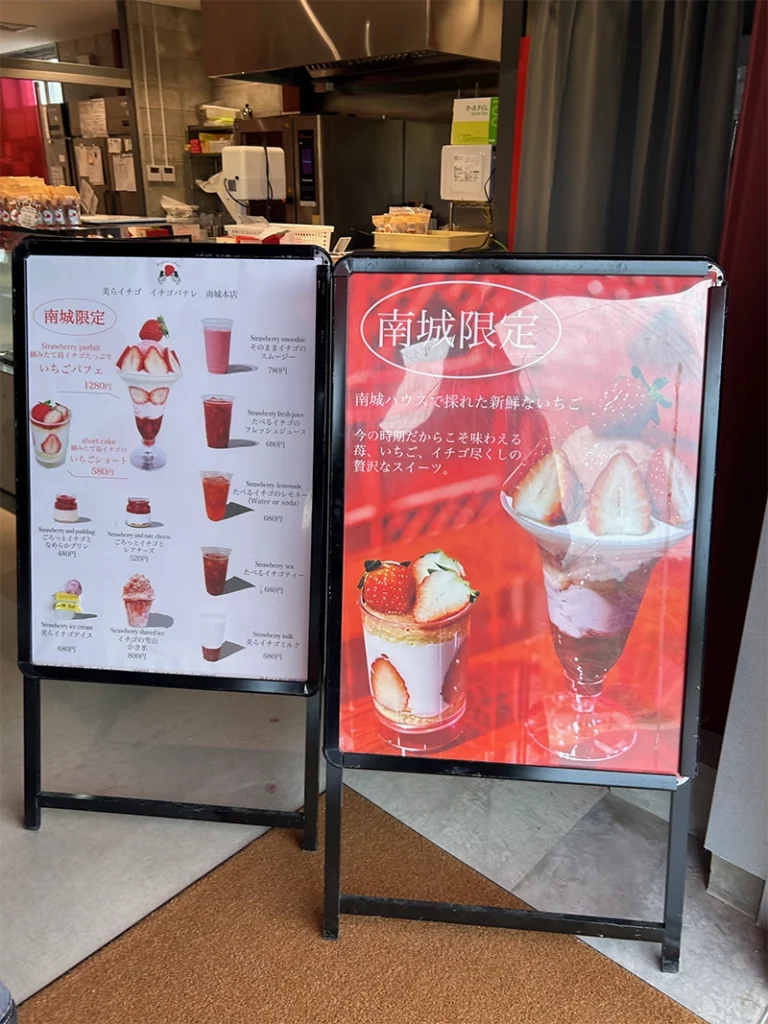 レジの近くにイチゴカフェもあり、美らイチゴを使ったデザートがありましたよ^^