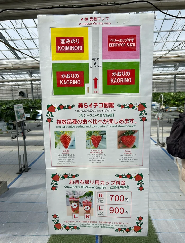 イチゴは「恋みのり」「ベリーポップすず」「かおりの」の3種類あって、それぞれ味や形も少し異なっていました!(2025年2月時点)