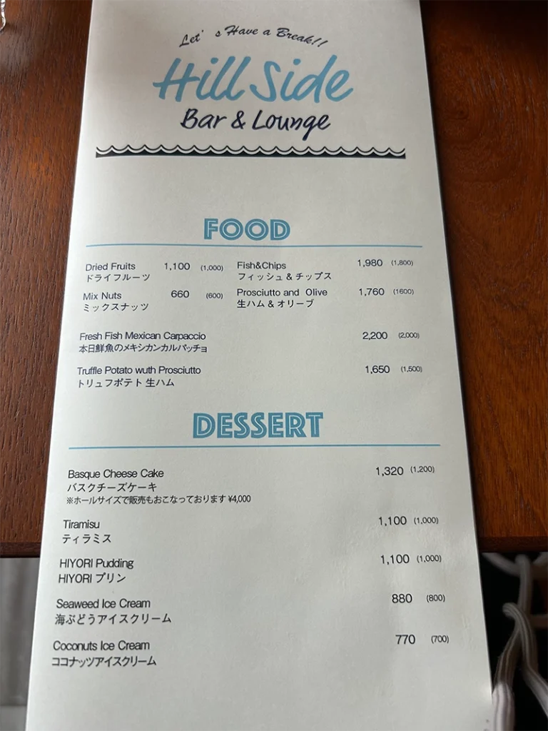 フロントの近くに「Hillside Bar & Lounge」があり、CAFEは11:00〜17:00で、季節によって旬の素材を使用したデザートも置いているみたいです♪
