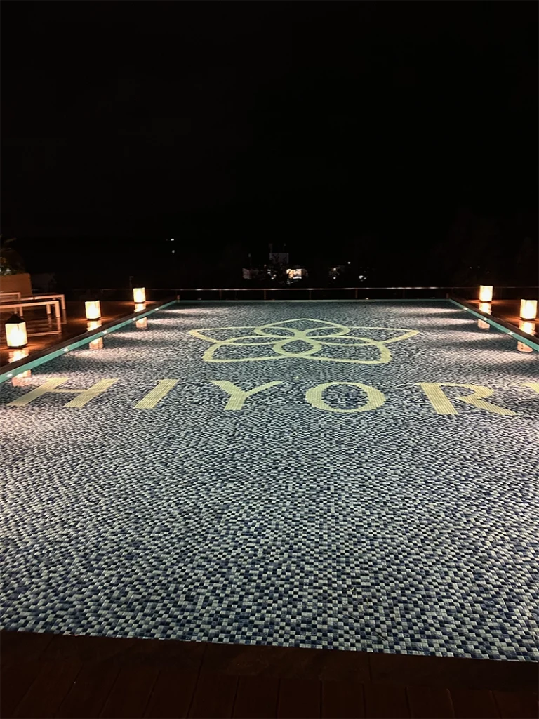 入り口にはインフィニティオーシャンプール(屋外プール)があり、9:00〜日の入りまで泳げるそうです^^