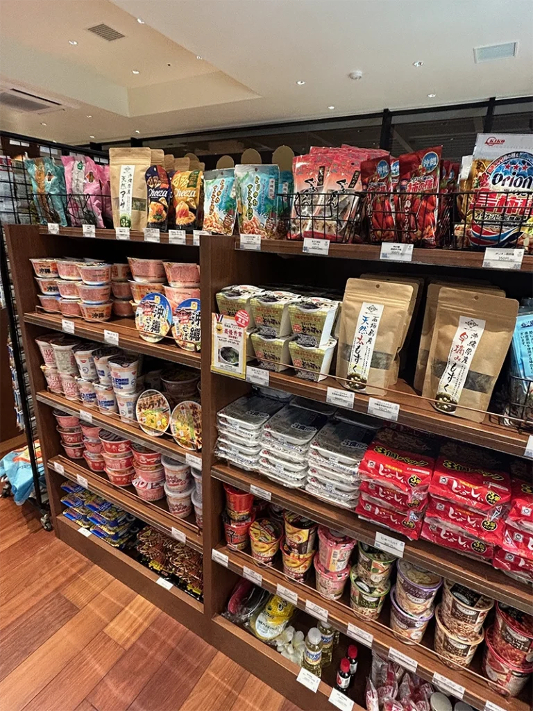 中に入ってみると沖縄を感じさせるタコライスや油味噌、シークヮーサー味のポテトチップスなどが置かれていました!飲み物コーナーには泡盛やハブ酒などもあったので、部屋でも沖縄を満喫できそうです^^