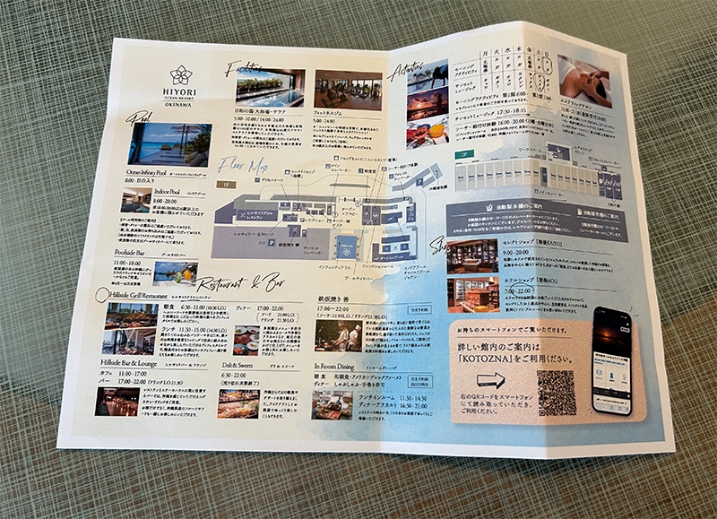 フロントで施設や使用できるサービスのパンフレットをもらいました!施設内に下記が使用できて、とても充実していたのでシェアしていきます^^
