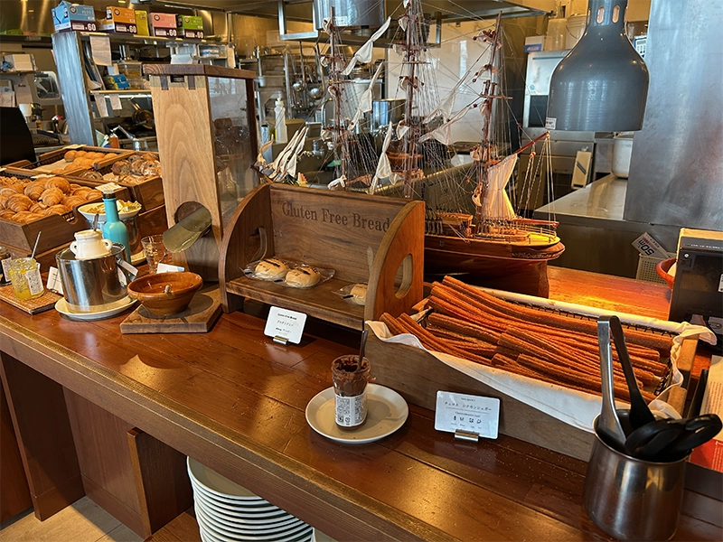 入ってきてすぐ目に止まるのはパンコーナー!美味しそうなチュロスやハチミツが流れていてとてもテンションが上がりました^^