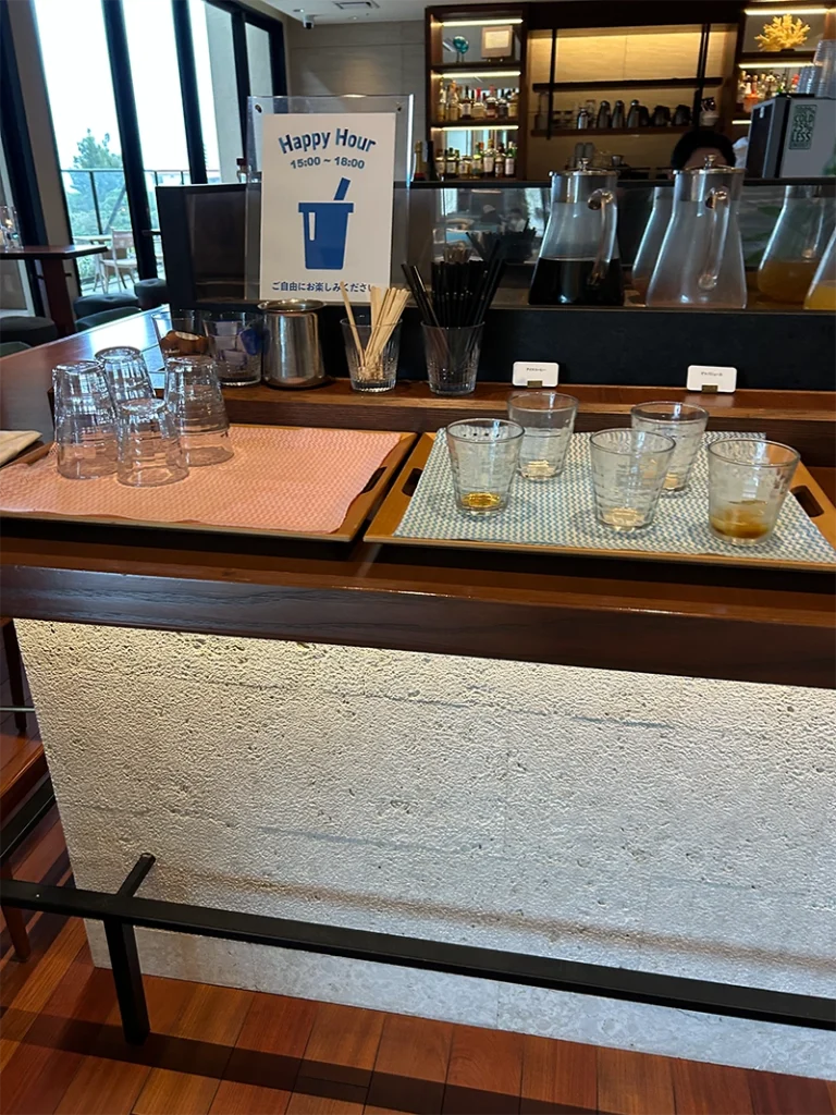 宿泊者は15:00〜18:00の間、BARカウンターの上に置かれているドリンクが飲み放題でした^^