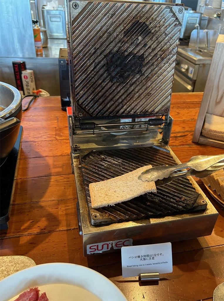 自分で好きなパンをホットサンドにもできちゃいます^^今回は近くに食パンとチーズベーコンがあったので挟んでみました!
