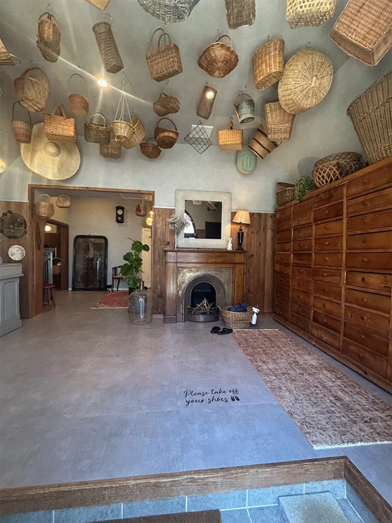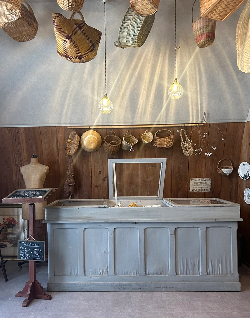 いざ店内へ入ると靴箱からジブリのような雰囲気を感じました^^天井にはかわいいカゴが沢山あってテンション上がりますね♪