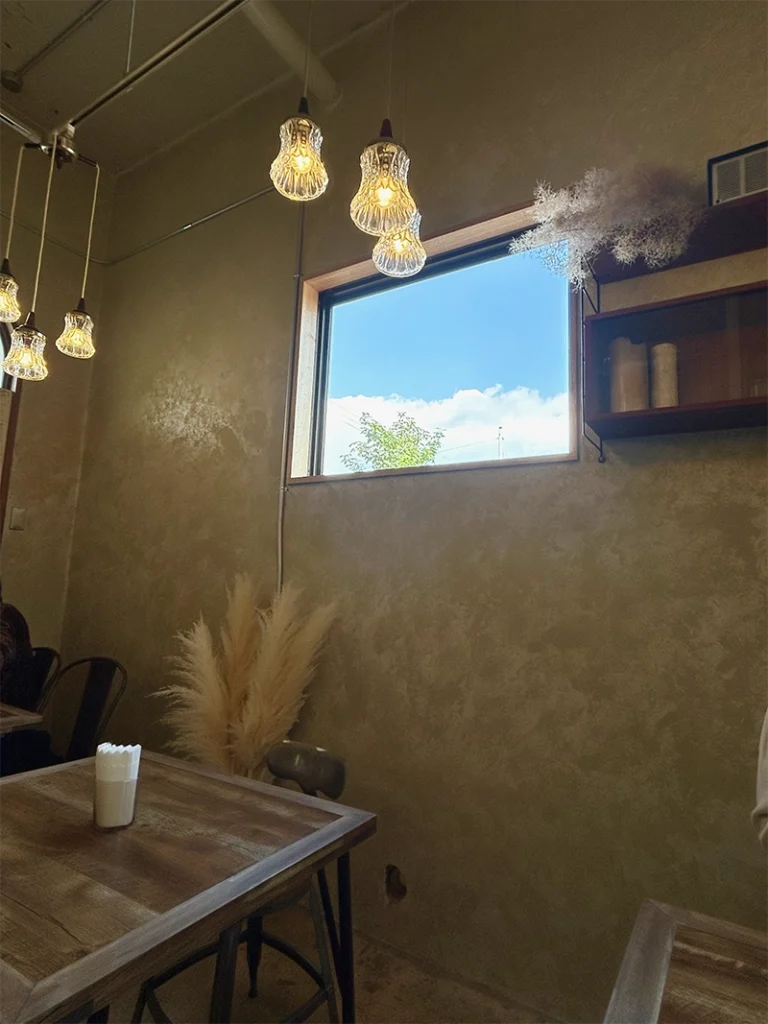 また、小窓からちらりと見える空と、やさしく灯るランプが印象的で、ゆったりと落ち着いて過ごせる空間です♪
