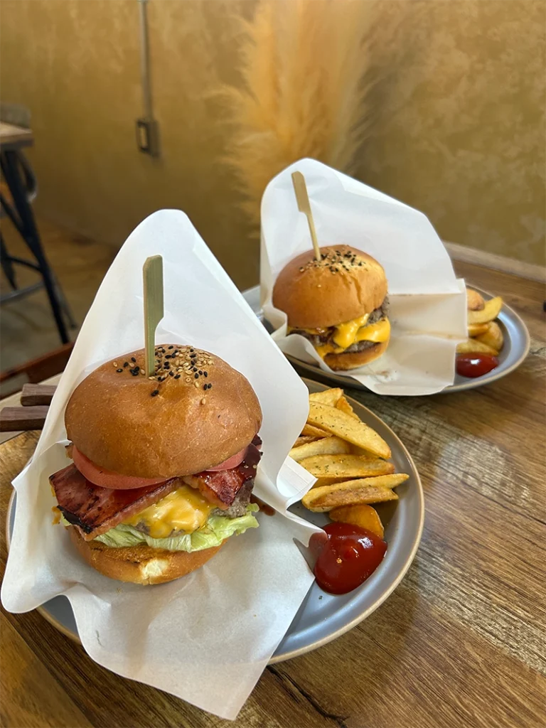 そんなこだわりの詰まった空間をつくっている店主(旦那さん)は、北谷にあるジェッタバーガーで修行を積まれたそうです。昔からハンバーガー店を開くことを目標にされていて、夢に向かって努力を重ねてこられたとのこと。背景を知ると、これからいただくハンバーガーにも、より期待が高まりますね^^